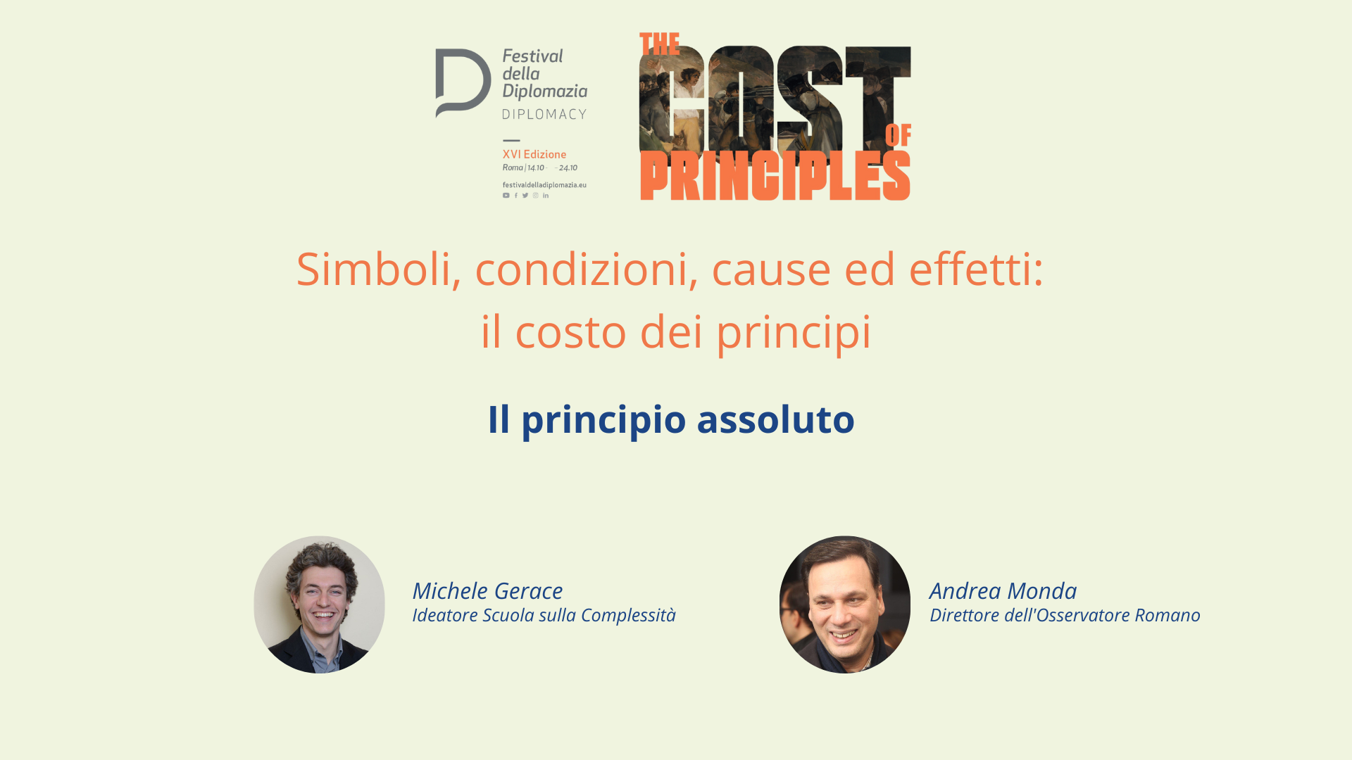 Symbols, conditions, causes, and effects: the cost of principles is a series of video conversations in collaboration with the School of Complexity, conceived and conducted by Michele Gerace. An invitation to reflect on what it means to have a principle, defend it, and pay the price: from its most concrete meaning in the laws of nature to its political, cultural, and spiritual value.