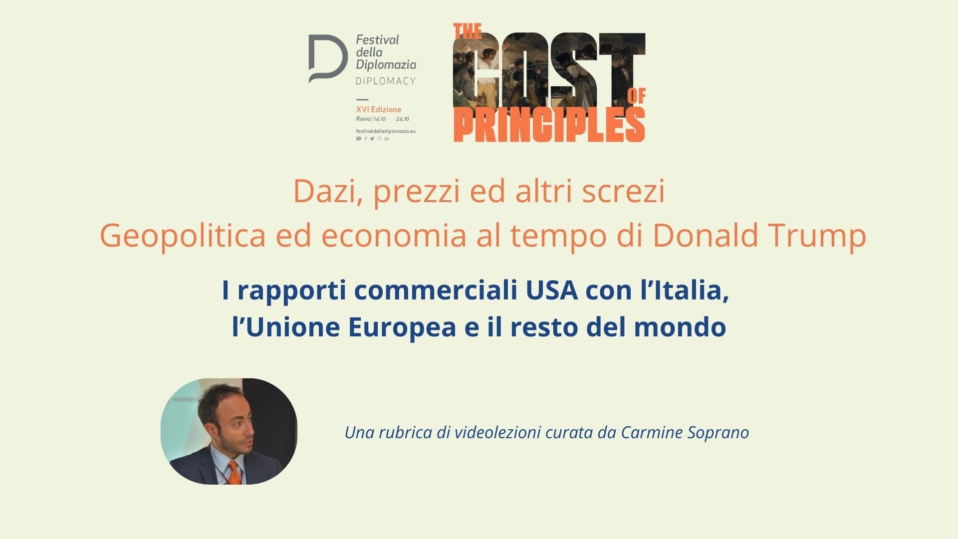 La seconda videolezione s’intitola: I rapporti commerciali USA con l’Italia, l’Unione Europea e il resto del mondo